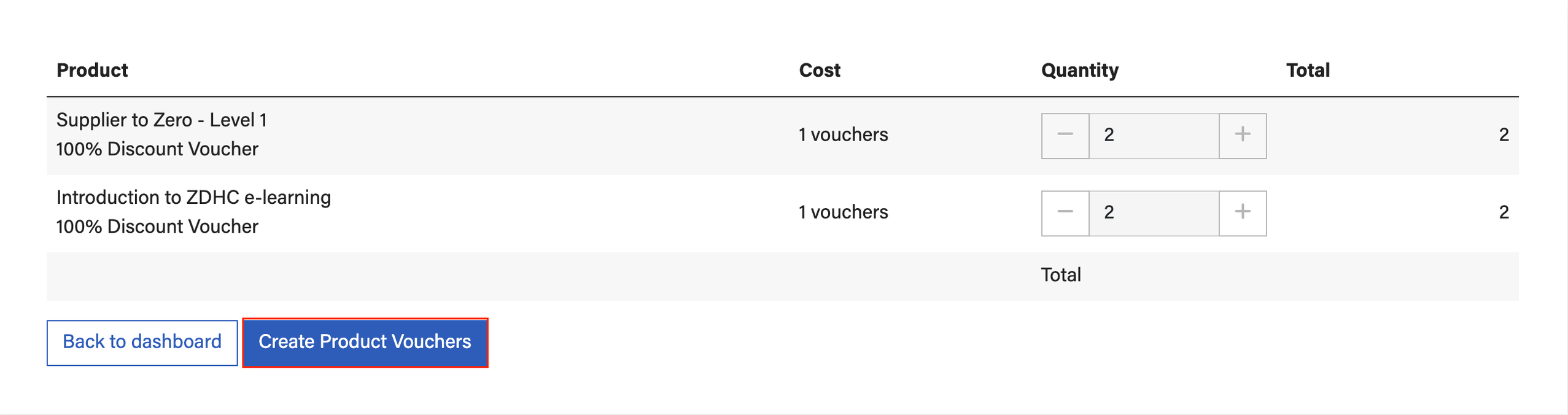 Checking Totals: Before finalising your selection, verify the total cost of the product vouchers you're creating. Ensure that this total does not exceed the total number of available implementation vouchers you have. This precaution prevents any discrepancies and ensures a smooth conversion process.