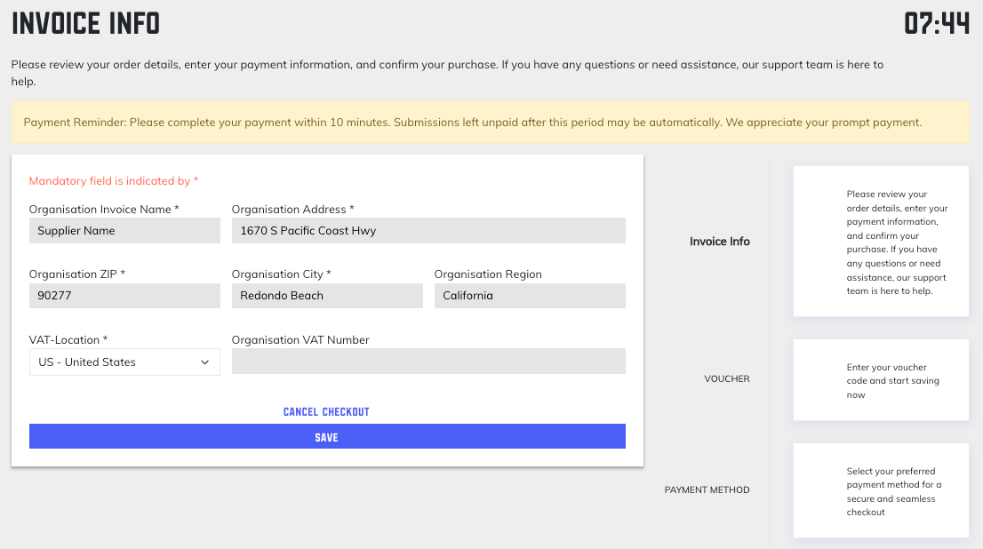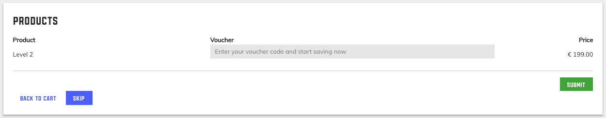 Voucher. If applicable, enter a voucher (token) code relevant to the product here: